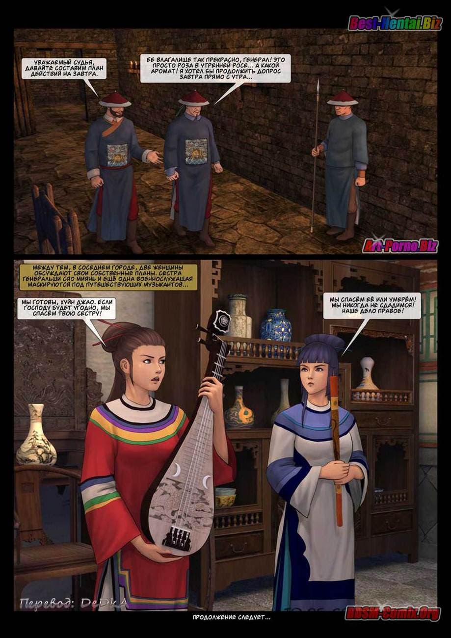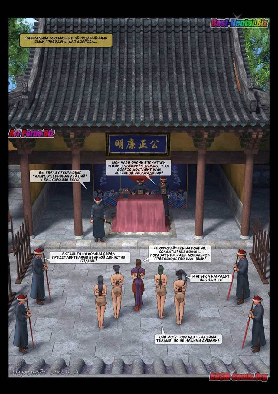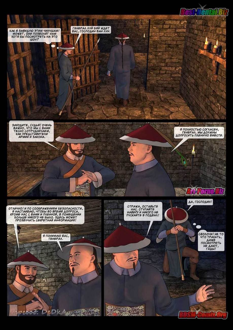В этой части секс комикса бдсм вы узнаете, как Луй Бяй, коварный военачальник войск династии «Бздынь» захватил командующую хуйпинскими повстанцами
