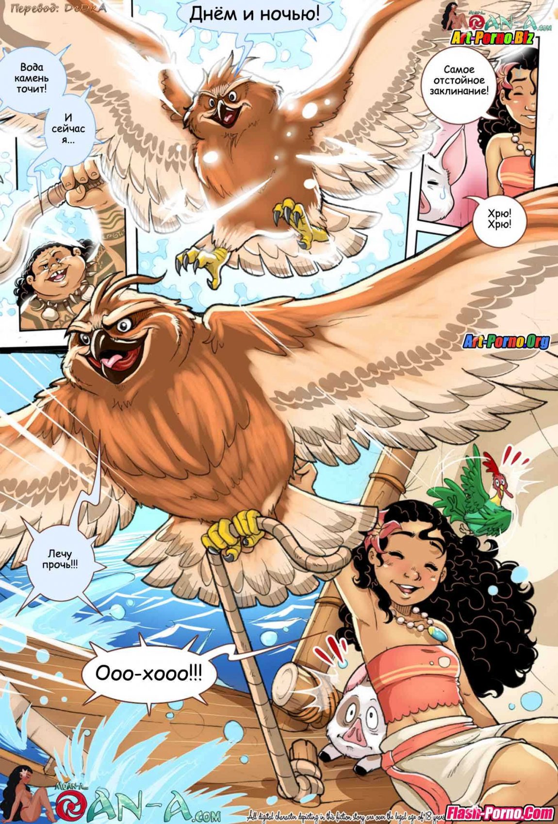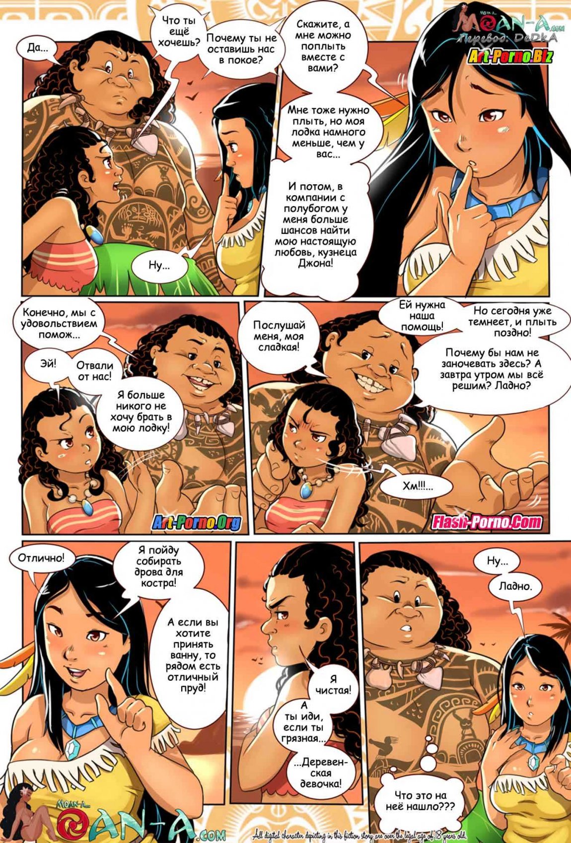 Секс комиксы про мультики Диснея «Моана» продолжаются! В новой эротической истории, где имена героев немного изменены Иуам и Мохана плывут в океане, где позже