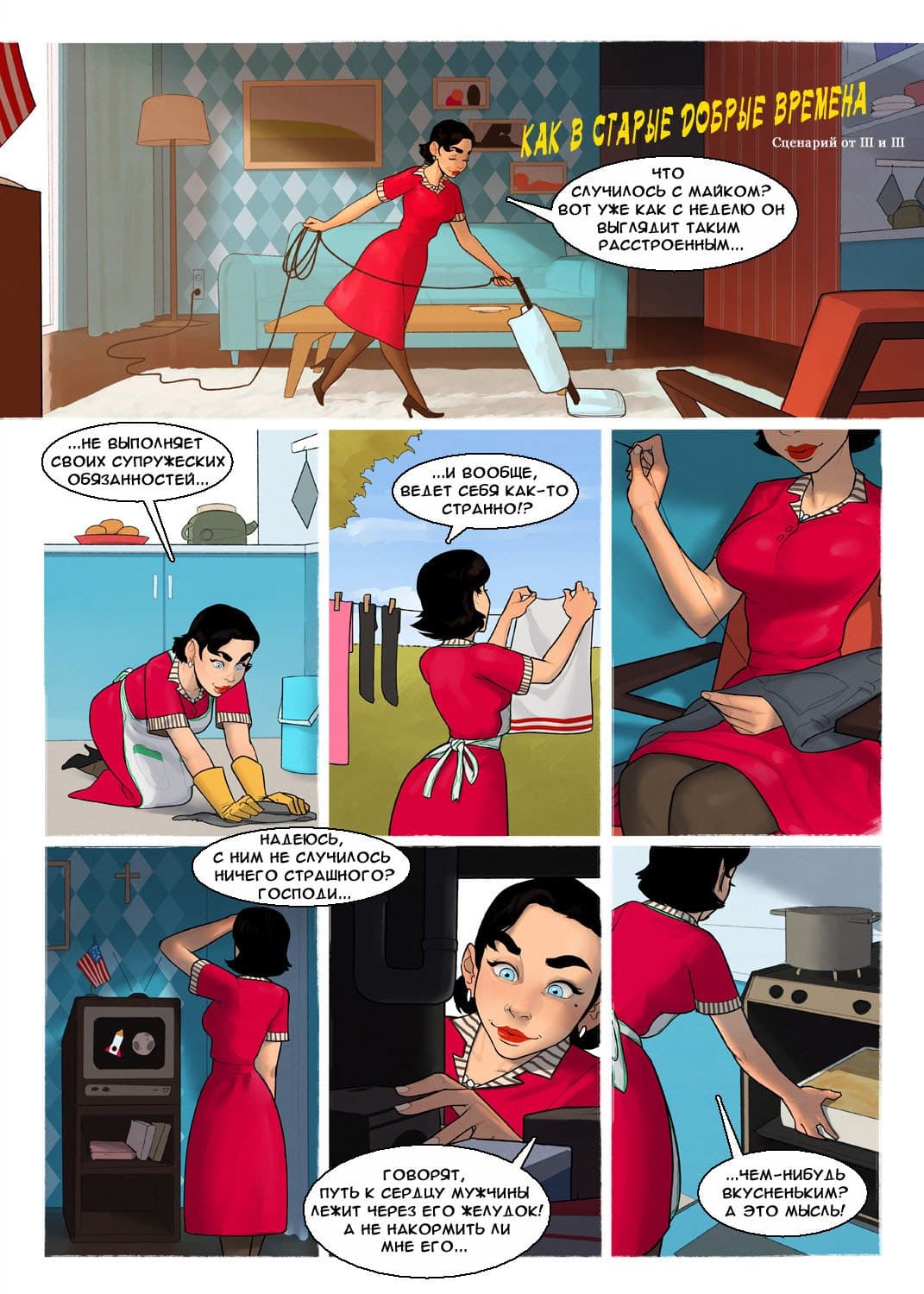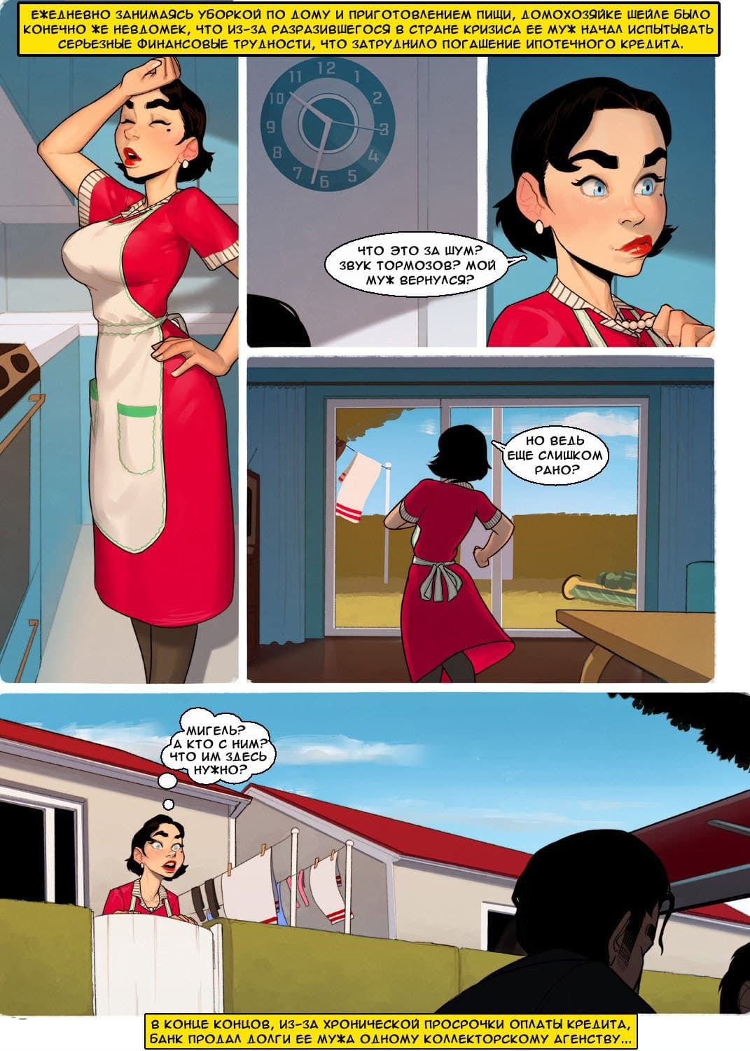 Эта возбуждающая история, в которой происходит бурная измена жены, в порно комиксе, о том, как целомудренной домохозяйке Шейле было невдомек, что из-за