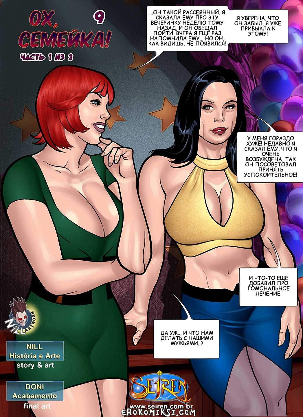Порно комикс Ох, семейка 9 часть начинается с того, что на вечеринку по случаю дня рождения одной безбашенной дамы были приглашены только женщины. А мужчин для своих гостий именинница приготовила заранее... Да, ещё каких мужчин!