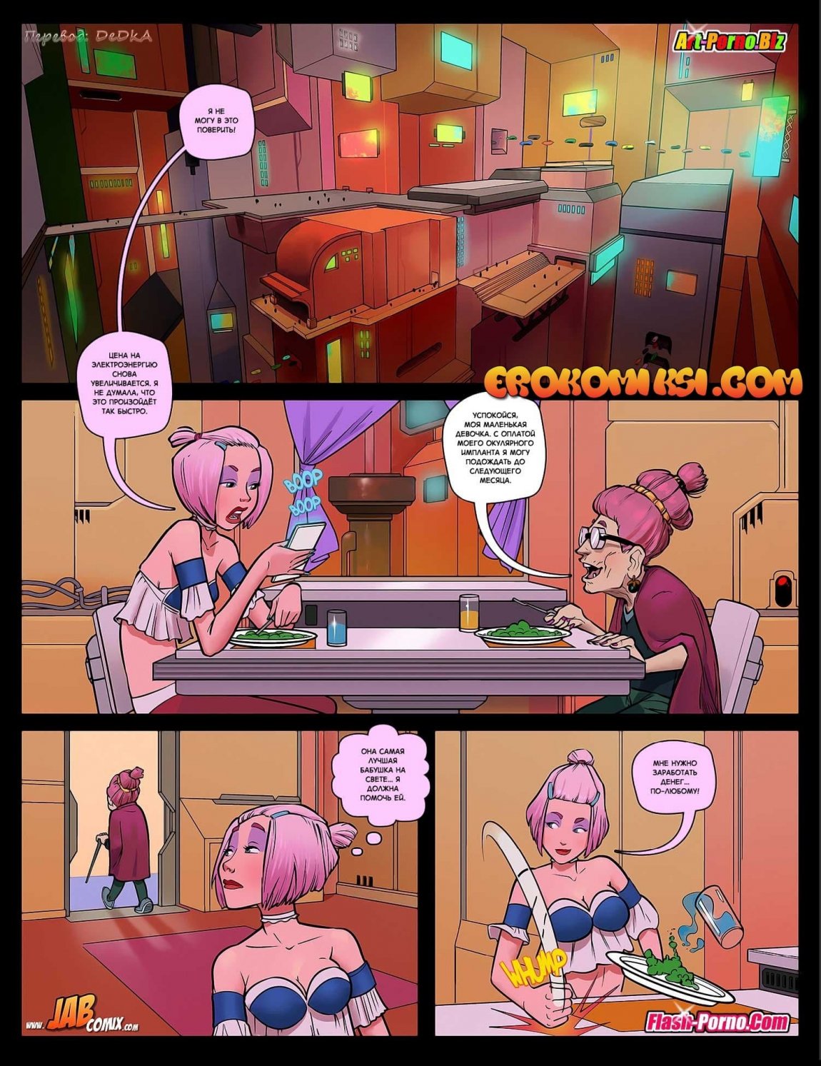 Порно комикс Ваниль расскажет о том, как симпатичная девушка по имени Ваниль живёт со своей бабушкой. Небольшой пенсии бабули с натягом хватает на оплату коммунальных услуг. А пожилой женщине ещё и на лечение средства нужны!