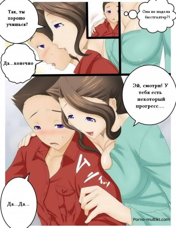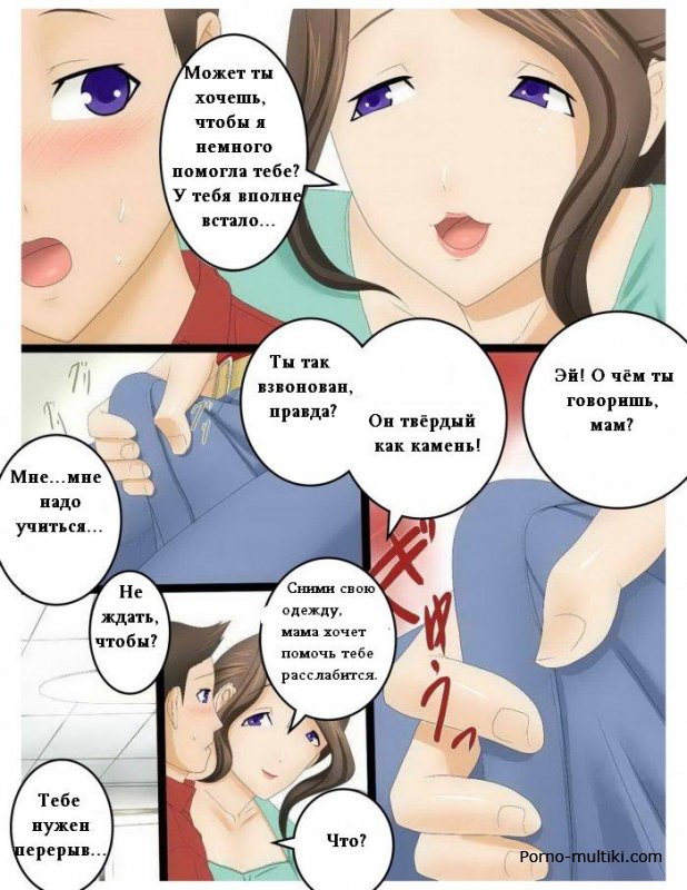 Сидя за уроками, сыночек просит свою мамочку сделать ему вкусный чай. Когда мамаша входит в спальню к сыну и тот замечает, что на ней нет лифчика, вмиг заводится. Мамуля именно этого и хотела, поэтому, увидев стояк сыночка, она нежно обхватывает его пальчиками, а потом и губами. Мамуля после минета готова к траху в пилотку, подставляя ее под член отпрыска в самых грязных позах.
