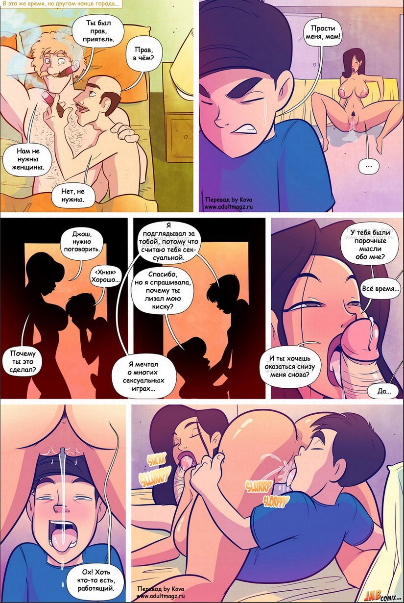 Переживая, что сыночек вырастет геем, мамуля решает все проверить лично. Смотрите порно комикс для взрослых, где мамка, взяв с собой втайне от отца на танцы сына, круто проводит с ним время. После танцев мамуля готовится к важной проверке. Она показывает сыночку груди и попочку и, увидев его стояк, очень радуется, что он не голубой. Останавливаться поздно, поэтому мамка ебется с отпрыском до самого оргазма.