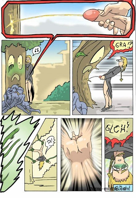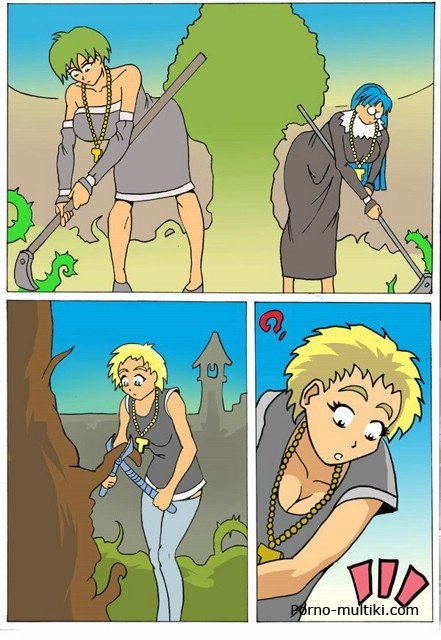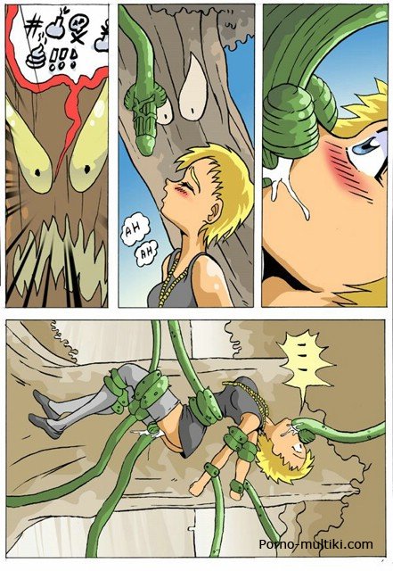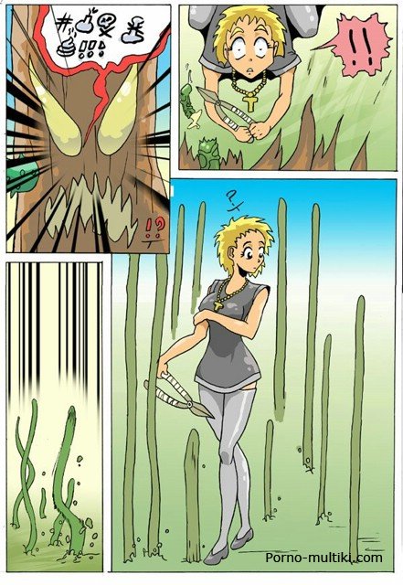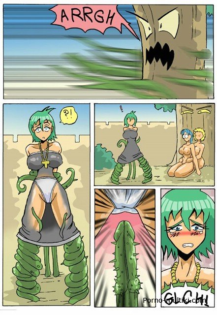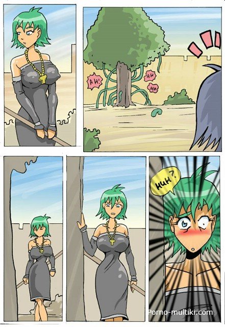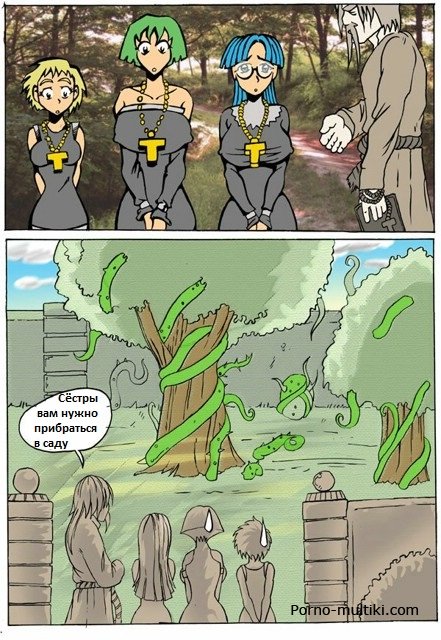 Смотрите секс комикс про монашек, которые, убирая территорию, натыкаются на огромное дерево с корнями-тентаклями. Подсмотрев между ног монашкам, дерево решает их изнасиловать. Очень уж у этих дамочек аппетитные киски и задницы. Схватив одну монашку и подняв ее тентаклями вверх, дерево проникает зелеными корнями ей в попку и в киску. Потом оно трахает еще одну монашку, и еще одну.