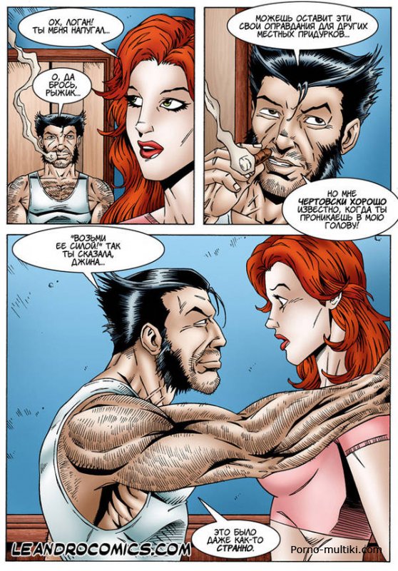 Росомаха всю жизнь любил только одну единственную красотку по имени Джинн. Рыжеволосая девушка с пышной грудью отвечала Росомахе взаимностью. Однако, любовники скрывали свои отношения, чтобы не подвергать друг друга опасности. Когда влюбленные оставались наедине друг с другом, Джинн с удовольствием облизывала огромный крепкий фаллос Росомахи перед тем, как садится на него киской.
