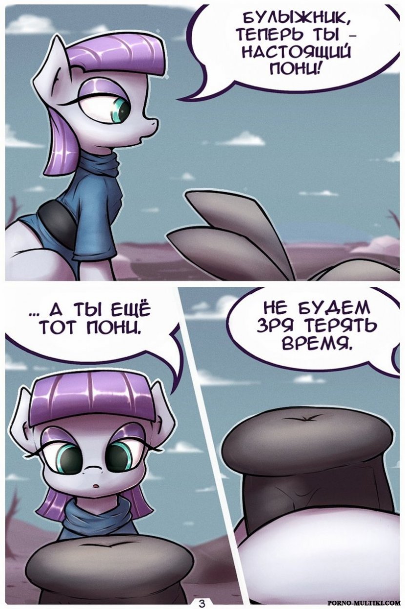 Смотрите порно комиксы, где сиреневый пони Мауд, получив записку от лучшего друга, решает воспользоваться его благодарностью. Пони нужно капнуть несколько капель на обычный камень, чтобы он превратился во что-то очень увлекательное. Увидев, что у камня вырос член, пони так обрадовалась, что сначала его отсосала, а потом раздвинула ножки для траха.